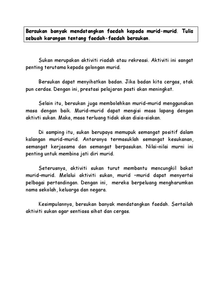 Contoh Karangan Tentang Sukan : Karangan Pmr Faedah Bersukan Pdf
